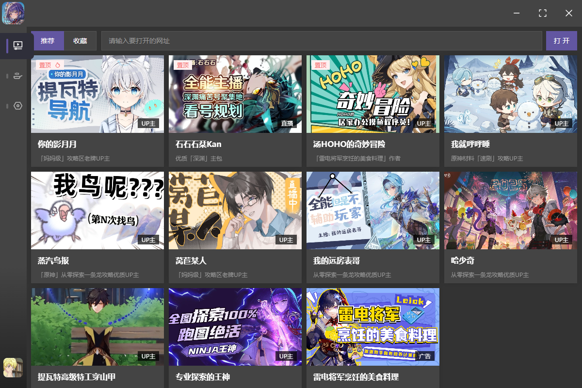 如果推荐和收藏标签没有想打开的视频,也可以在地址栏输入对应地址,点击打开按钮,也可以唤起视频窗口。